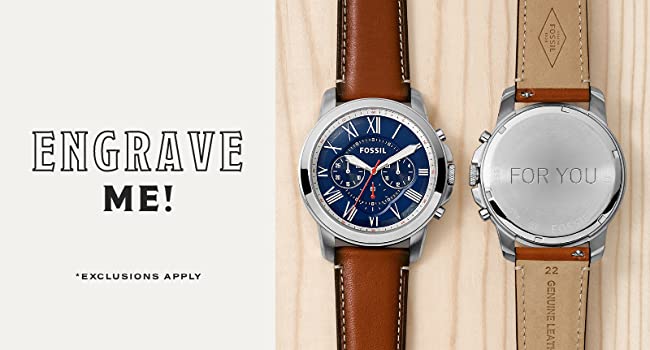 Customize your watch with complimentary engraving at a local Fossil store. *Engraving is available at participating U.S. and Canadian full-priced and outlet Fossil stores. This service is not applicable on all accessories.