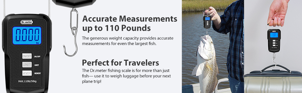 - 【Extreme Accuracy】: The Dr.Meter fishing scale can weigh both small and large catches alike, from a mere 0.2 lbs to a jaw dropping 110 lbs